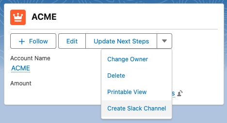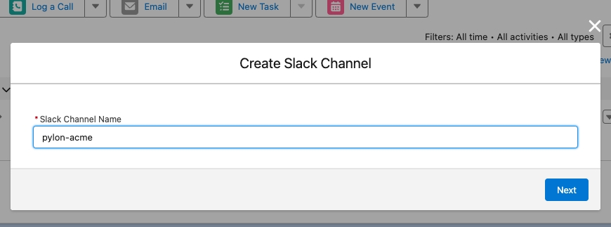 You can greatly simplify Slack channel creation using our Salesforce widget. Click Create Slack Channel