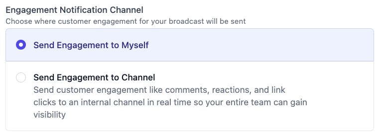 You can select to have a feed of engagement notifications to be sent to you or to a public channel for others to see as well.