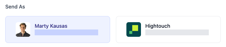 You can choose to send the broadcast either as yourself or the company.