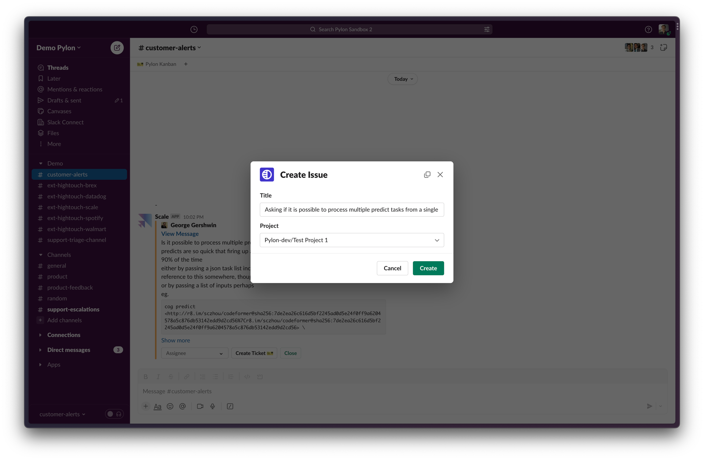 Via Triage channel: when conversational tickets are posted in your triage channel and product ticketing is enabled, you’ll see a
