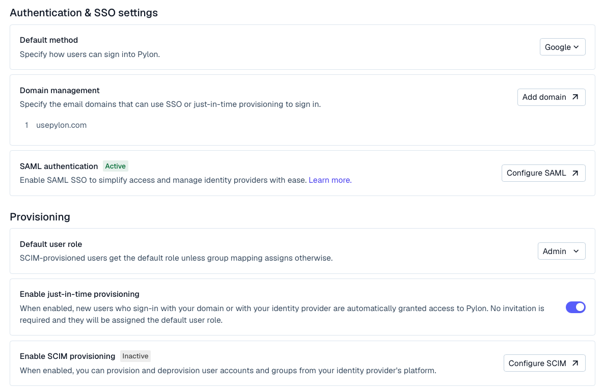 SSO enables teams to streamline access management as they onboard to Pylon.