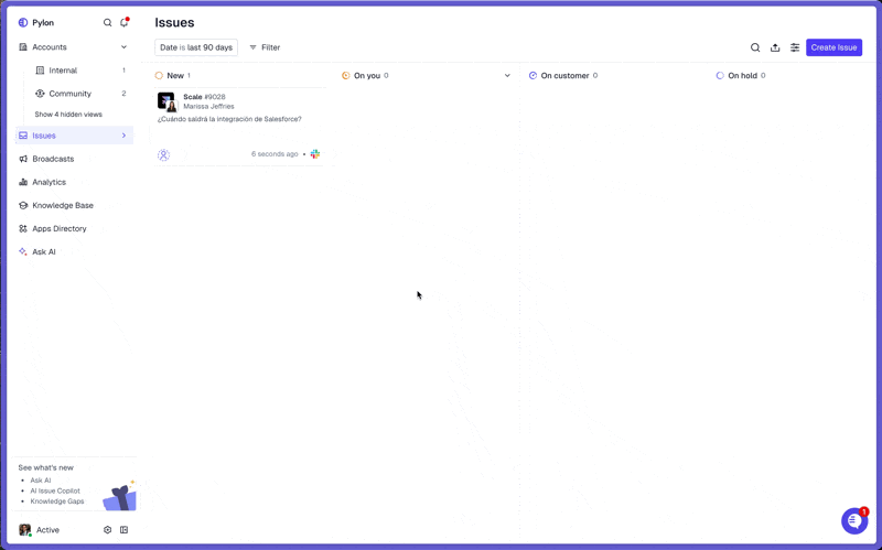 Based on your personal language preferences, Pylon can detect incoming messages that are in a different language, and auto translate them. Your responses can then be in your native language and Pylon will translate replies into the customer's language!